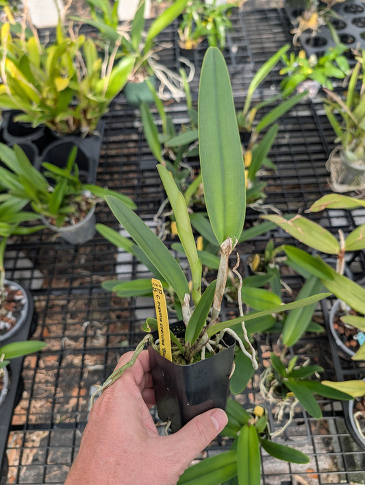 from 215 reviewsI have been buying orchids from Jason at Barefoot Nursery for over a year and all of the orchids I buy from him bloom with in 6-8 months. If you want some beauties for your garden you need to visit his web site or check out his live sale on Sunday evenings. Thank you Jason for caring so much for the orchids you send out. The picture I have enclosed is Rlc. Yen Corona Glenies. I purchased it in March of the year and it is getting ready to bloom!
