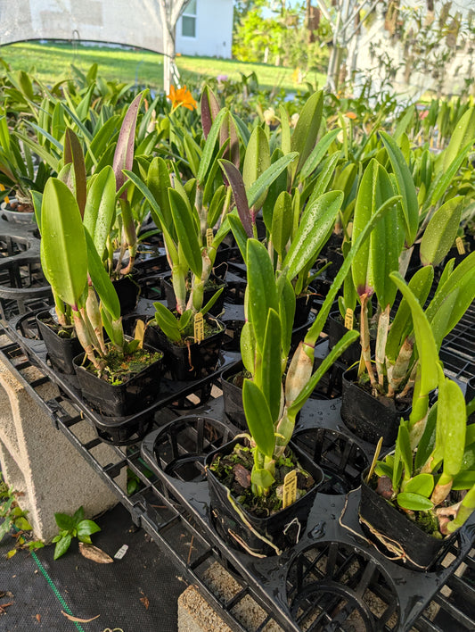 from 328 reviewsI have been buying orchids from Jason at Barefoot Nursery for over a year and all of the orchids I buy from him bloom with in 6-8 months. If you want some beauties for your garden you need to visit his web site or check out his live sale on Sunday evenings. Thank you Jason for caring so much for the orchids you send out. The picture I have enclosed is Rlc. Yen Corona Glenies. I purchased it in March of the year and it is getting ready to bloom!